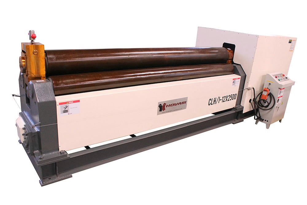 As Calandras Piramidais Elétricas Hovam são modernas, resistentes e eficientes. Possuem pressão regulável por meio de painel de controle, facilitando o trabalho do operador e garantindo maior velocidade no processo, otimizando assim a produção e reduzindo custos. Além de curvar chapas uniformemente, este modelo é capaz de criar raios não uniformes nas chapas calandradas, ou seja, desenvolver peças cônicas.