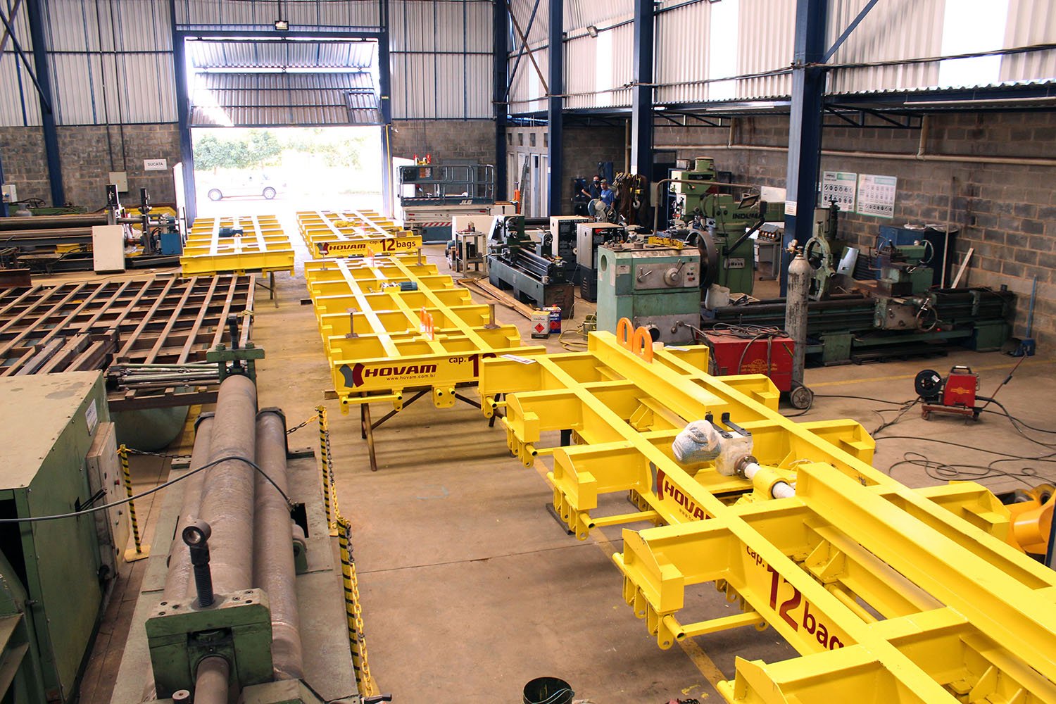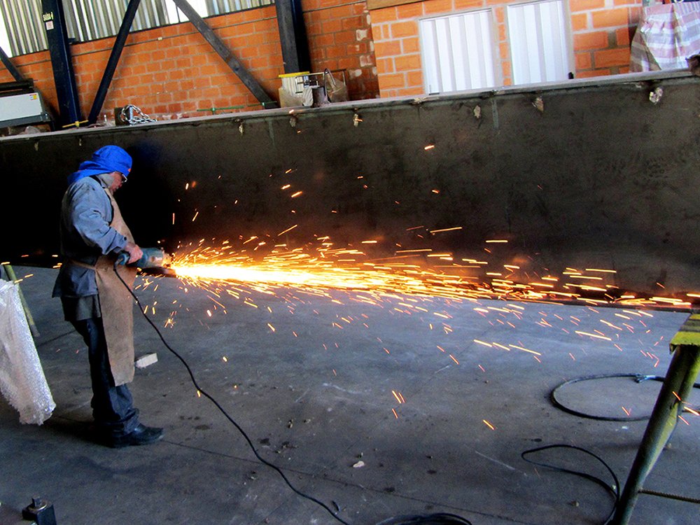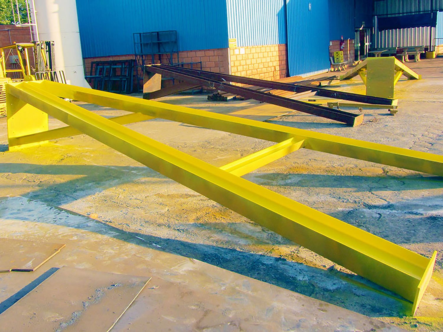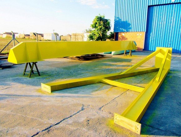 Depois de separar todos os itens que serão utilizados no projeto, a produção começa com a soldagem, corte das vigas e chapas de aço. O acabamento é feito nos mínimos detalhes e assim, liberamos para a pintura. Realizada com tinta amarela de segurança, feita com revólver de modo industrial.